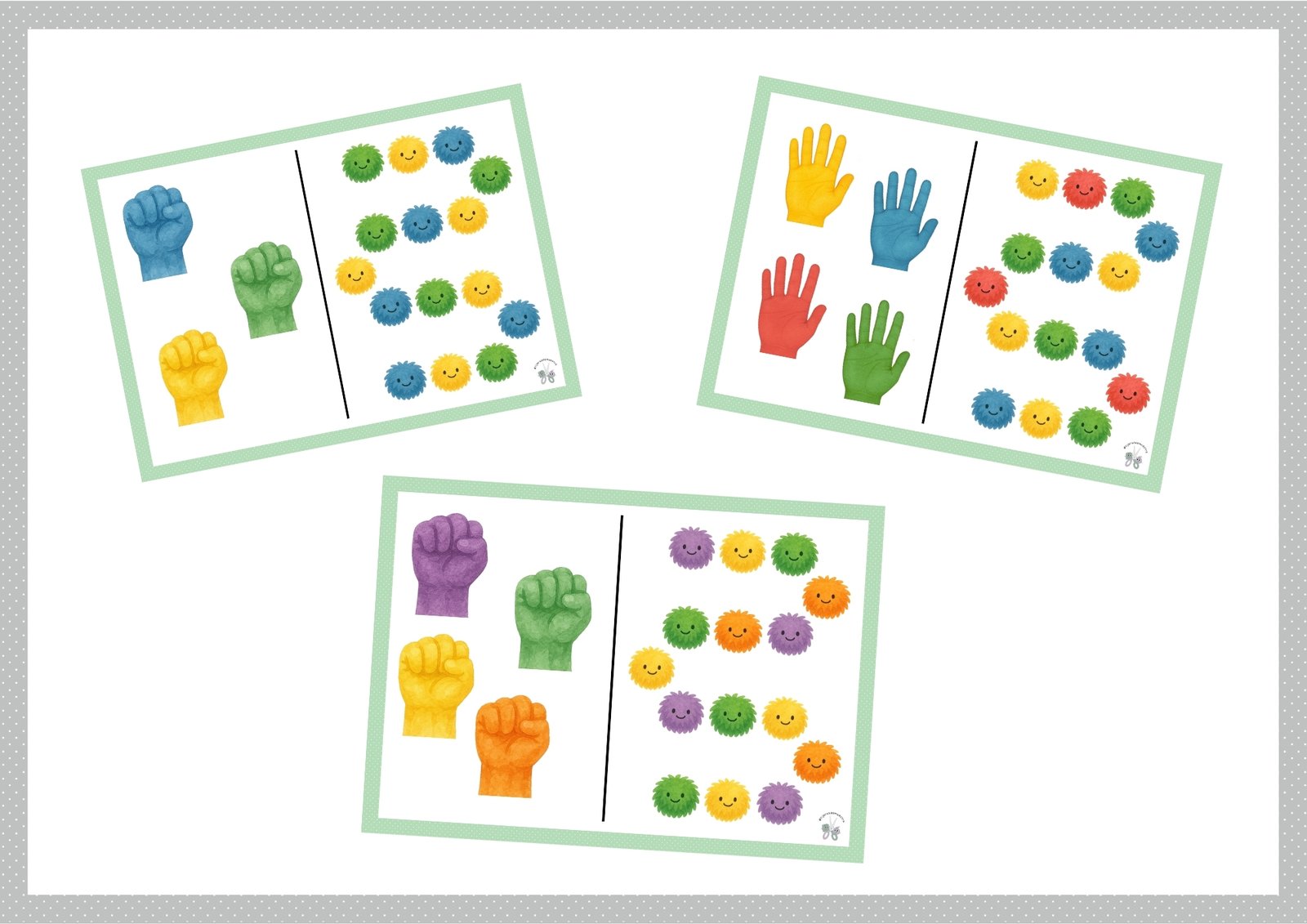 👉 Con la mano derecha, señalamos las pelusas en orden.