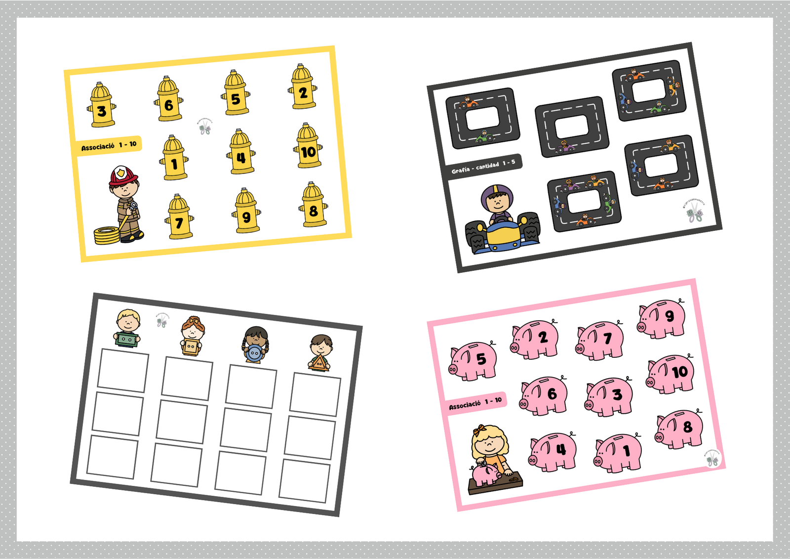 🔹 Nivel inicial → asociación de grafía con grafía (1-10) y formas con apoyo visual.