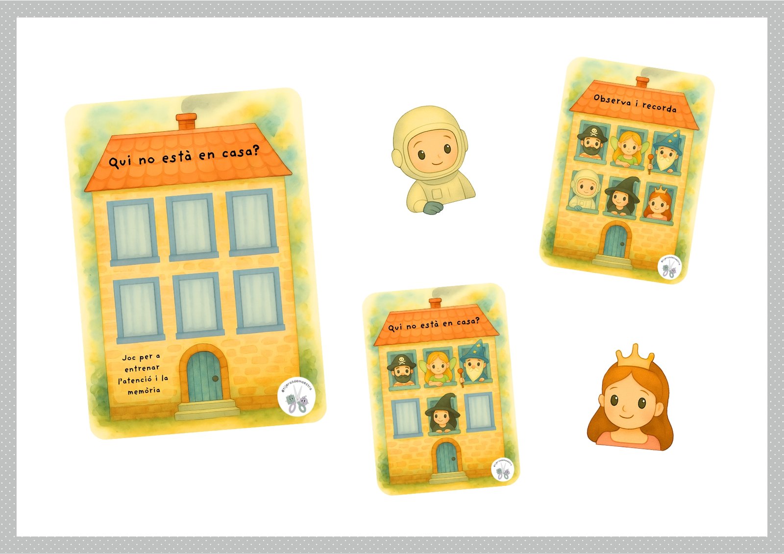 💡 En mi caso, algunos peques necesitaban apoyo visual, por lo que el recurso incluye tarjetas plastificadas con las fotos de los personajes para que puedan colocarlas en las ventanas.